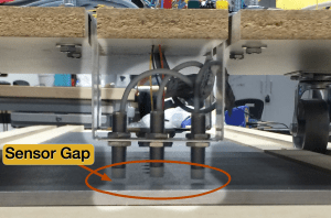 Three sensors are mounted to the underside of the cart on an adjustable bracket. This bracket allowed us to adjust: