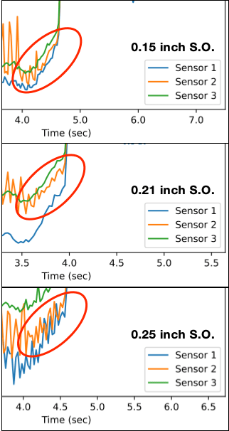 Based on these results, we used a standoff distance of 5.46 mm (0.215 in) for all subsequent testing.